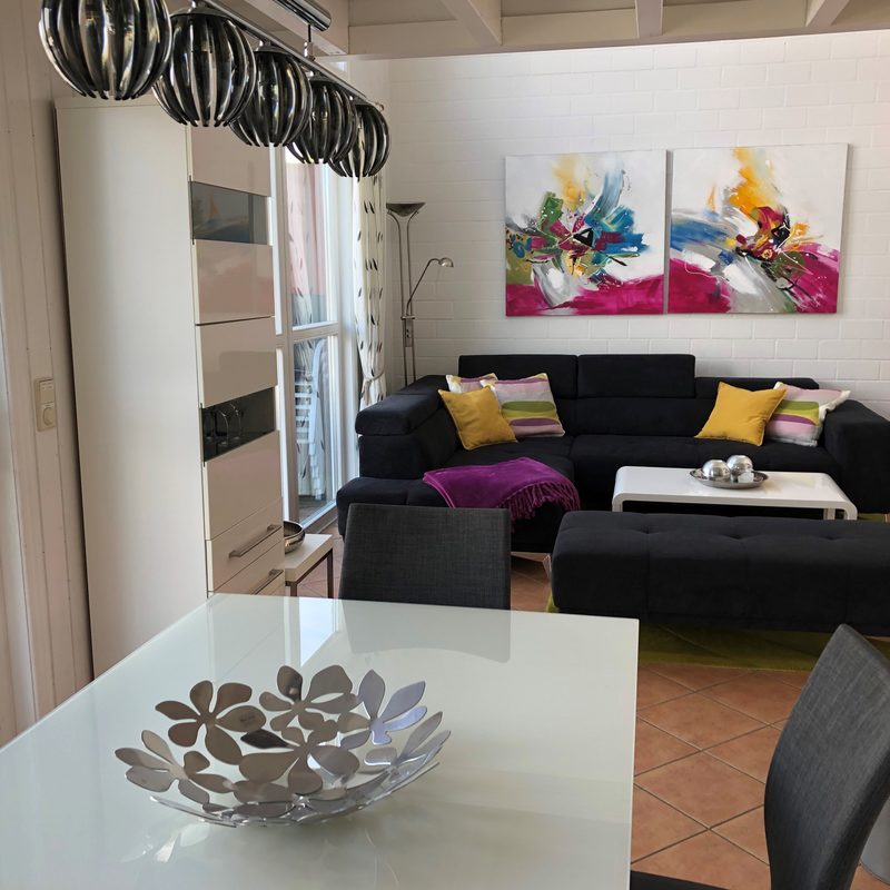 Wellness pur bietet Ihnen das mit elektrischer Fußbodenheizung, Whirlpool, Sauna und Dusche ausgestattete Badezimmer im Erdgeschoss. Im Obergeschoss befinden sich das zweite Schlafzimmer mit Doppelbett und TV, eine offene Galerie mit Sitzecke, Schlafmöglichkeit für zwei Personen und LCD-Plasma-TV mit DVD-Player, ein weiteres Bad sowie ein Kinderzimmer mit zwei Einzelbetten, welches besonders liebevoll eingerichtet ist. Da auf beiden Wohnebenen je ein Badezimmer vorhanden ist, eignet sich das Ferienhaus auch optimal für zwei Familien, die ihren Urlaub gern gemeinsam verbringen möchten. Zwei Pkw-Stellplätze stehen am Haus zur Verfügung. Haustiere und Rauchen sind in diesem Ferienhaus nicht gestattet.