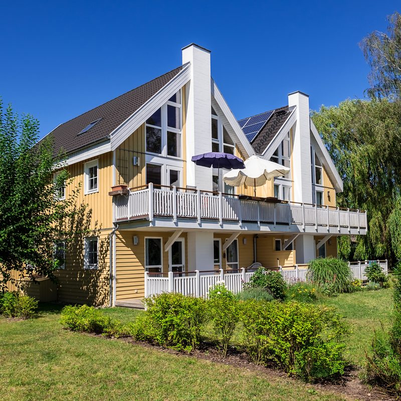 Zweigeschossiges Ferienhaus Kapitän mit Seeblick im Marinapark Scharmützelsee, Maisonette-Stil mit einer Wohnfläche von 109 m², für 8 Personen im 1. und 2. Obergeschoss.